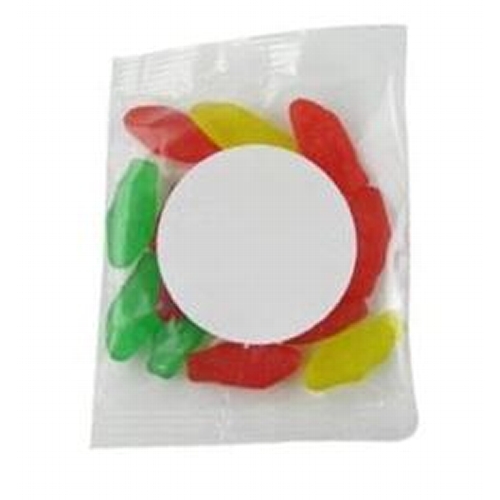 Goody Bags might be small but they're big on taste and impact! Perfect for parades, trade shows, conferences or product launches - an inexpensive, colorful and delicious treat. Shown here with popular snacks and imprinted with a full color, full bleed imprint label. Goody bags have a full ingredient listing on the back of each pouch.