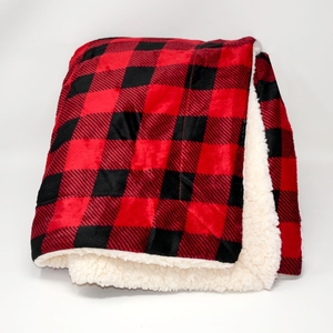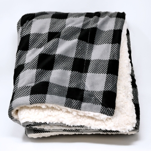 Faux micro fur/faux lambswool available in 4 buffalo plaid patterns, 50" x 60", made from 100% polyester.