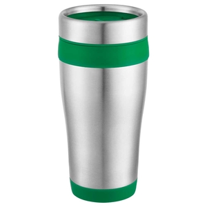 The Carmel 16oz Travel Tumbler features double-wall construction and stainless steel twist-on lid with a slide-lock drink opening. Hand wash only and follow any included care guidelines.