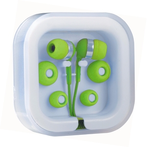 The Color Pop Earbuds w/Microphone are a deluxe earbud set that includes a built in cable microphone that allows you to go hands free with your media device. Easily answer or end a call with a single button on the microphone. This set also includes three interchangeable soft rubber earbud covers a plastic case with cable storage a standard 3.5mm audio jack and a 38 inch earbud cable.