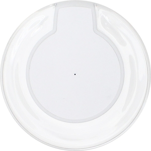 Eliminate the need for cables with this Wireless Charging Pad. This sleek accessory works with select IPhone & Android Models. All you have to do is place your compatible smartphone on the charging pad and voila, your phone begins to charge - no cable is needed(However, the charger itself must be plugged into a wall outlet to work)!This charger includes an LED light, that when your phone is placed on the charger, a Blue LED light will come on, indicating the phone is charging. Featuring a 5 watt charging power, your phone will be charged and ready to go in no time. You can have your logo imprinted on the middle of the charger to keep your logo front and center. Available in Black & White only. This Wireless charger utilizes Qi Inductive Charging Technology that eliminates the need to attach a charging cable every time you want to charge your device.