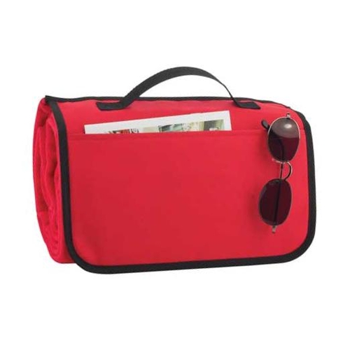 The Meadow Fleece Blanket includes a front pocket with a hook and loop closure and an easy carry handle. Unfolded blanket size: 54 inches long by 46 inches wide. Blanket weight: 500 grams.