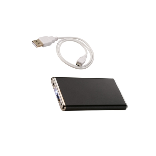 The Slim Aluminum 2200 mAh Power Bank is a lithium polymer Grade A battery device powerful enough to charge smartphones, MP3 players and more. It also includes an LED light. The reusable power bank charges via a USB cable (included) which can recharge the battery backup or be used to charge devices with a micro-USB input like Android smartphones from Samsung, Motorola, HTC, Nokia, and others. A blue LED indicator light turns on when device is fully charged. Input: 5V/800mA. Output: 5V/1000mA.