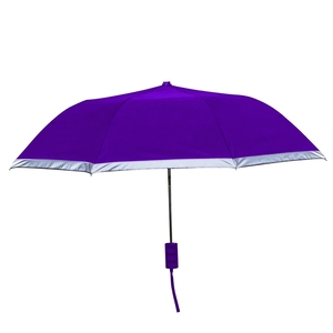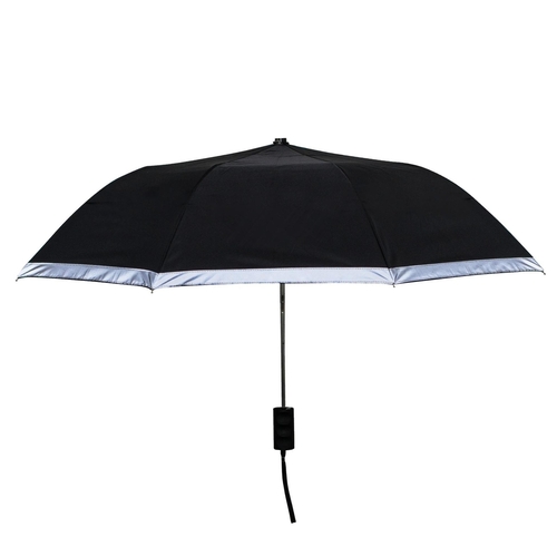 Reflective border umbrella,New. 42" arc auto open folding umbrella with a 1" reflective border around perimeter. Rubberized handle and matching sleeve. Great for any safety program. Perfect for those dark,rainy nights where you need to be seen, Safety.